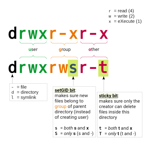 - ob Dateien gelesen/geschrieben oder auch (wie ein Kommando) ausgeführt werden können