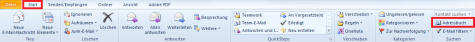 In Outlook finden Sie das globale Adressbuch, indem Sie auf der Symbolleiste „Start“ oben rechts auf das Symbol mit dem Adressbuch klicken.