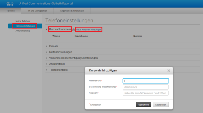 2. In den Telefoneinstellungen finden Sie die Kurzwahlnummern.